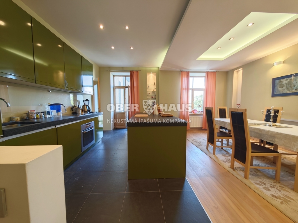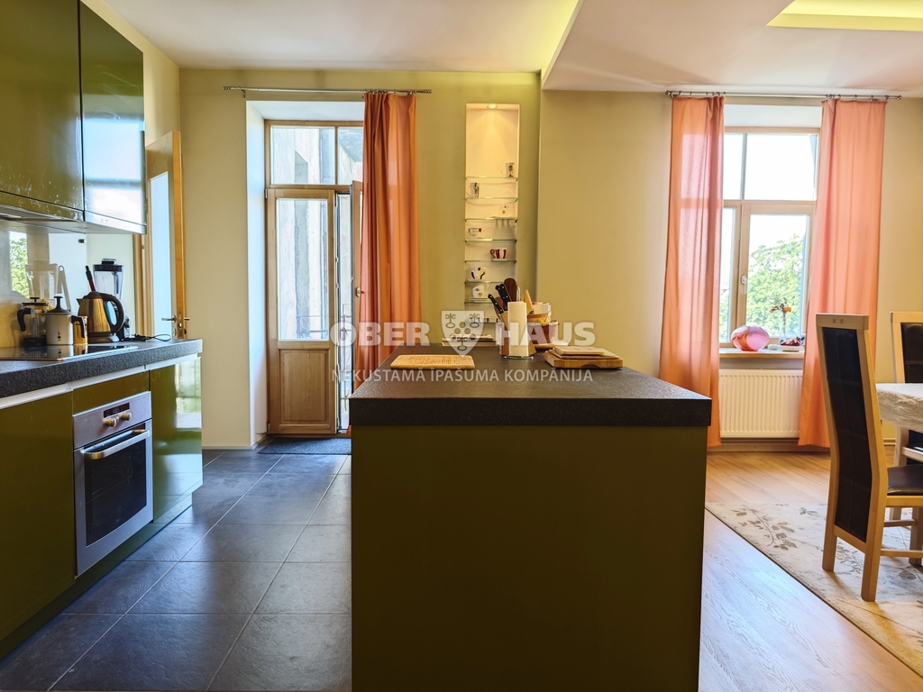 Elegants četru istabu dzīvoklis Renovētā pirmskara laika ēkā ar Jūgendstila fasādes arhitektūru.