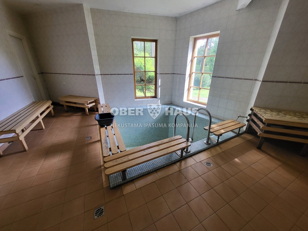 - Pirts ēka ar banketu zāli, baseinu un gultas vietām 327,7 m2 platībā;