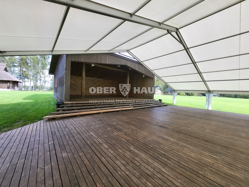 - Liela brīvdabas estrāde un plaša terase ar nojumi lielākam viesu skaitam un lielākiem siltā laika pasākumiem ar kopējo platību 541,1 m2;
